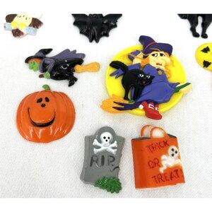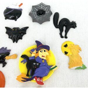 Halloween Plastic Magnets Witch Cat Pumpkin Skull Fall Vintage 1980s Lot of 11