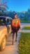 Vibrant Halloween poncho with 'Eat, Drink & Be Scary' print. Features black fringe detailing. And hat