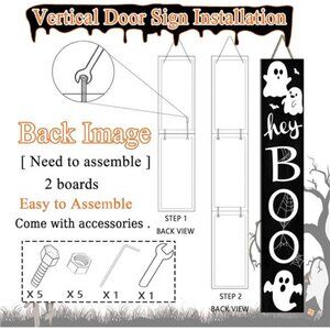 Easy Setup: Our Halloween farmhouse porch decor comes in three wooden planks, each measuring 15.7 x 7.9 inches. Assembly is a breeze, reaching a height of 47.2 inches. With all the necessary accessories included, you'll have this charming decor piece up in minutes. Hang it securely or lean it against the wall using the sturdy attached rope.During installation, please align the wooden boards first and then tighten the screws. Fine adjustments can be made between the boards.