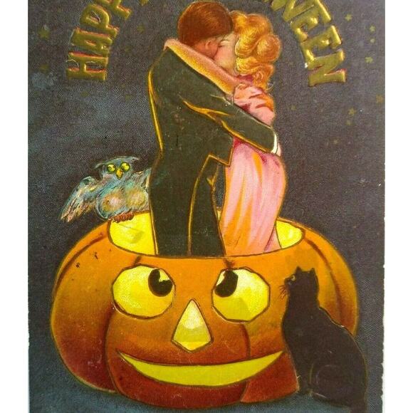 Halloween Postcard Kissing Couple Sanders 1909 Series 240 Syracuse NY Vintage
