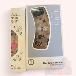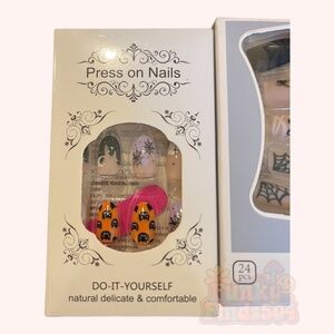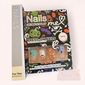 Fun and affordable bundle of 4 brand new press-on nail sets with Fall and Halloween designs. Includes pumpkins, spiderwebs, bats, and ghosts. Perfect for parties, costumes, or adding festive flair to your look. NWT. Glue not included.