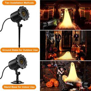 3D dynamic ghost projector: This projector projects a white ghost pattern, which is not a static image but moves, so it looks very real, and its realistic effect is amazing, creating a scary Halloween atmosphere