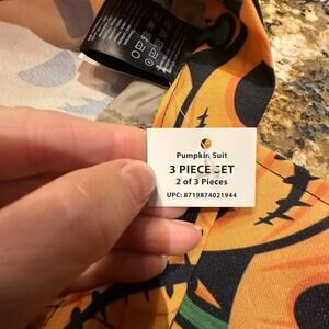 Get ready to turn heads with this fantastic Halloween Pumpkin 3-Piece Suit! This men's size medium suit is brand new with tags and includes a jacket, pants, and a matching necktie. Perfect for Halloween parties, costume events, or making a bold fashion statement. The vibrant pumpkin design is sure to make you the life of the party. Don't miss out on this unique and festive suit!