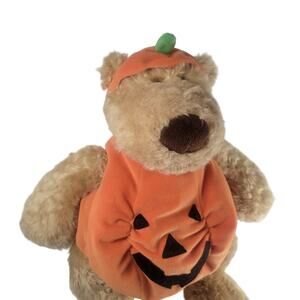 Halloween Pumpkin Bear Plush Stuffed Animal Brown Tan 16" Pottery Barn RARE