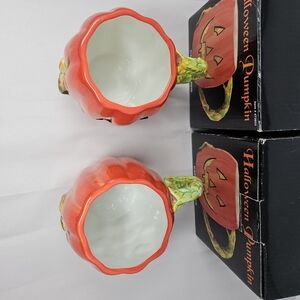 Halloween Pumpkin Ceramic Mugs Set Of 2 Susan Winget 22 FL. Oz Autumn fall Feel