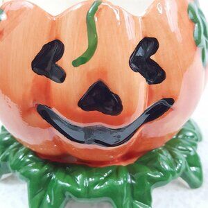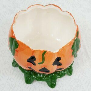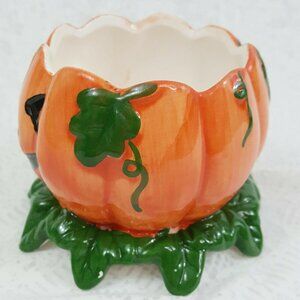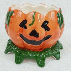 Cerabella Jack O Lantern Halloween Fall Autumn Planter Pumpkin Ceramic Tealight Votive Candle Candy Trinket Dish