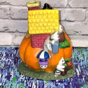 Halloween Pumpkin JOL House Ceramic Holiday Tea Light Holder Ghosts Witch Decor