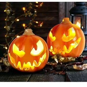 Illuminate your space with these spooky Halloween pumpkin lanterns. Perfect for adding a festive touch to your home decor.
