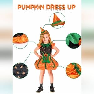 Suitable for Girls of Different Ages - Which costume for girls kids available in 4 sizes Small (3-4 yr),Medium(4-6 yr),Large(6-8 yr ),X-Large(8-10yr). Suitable for young girls of different ages. These pumpkin witch dress are flexible.