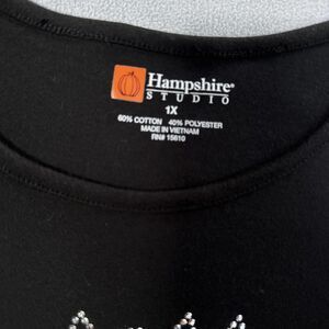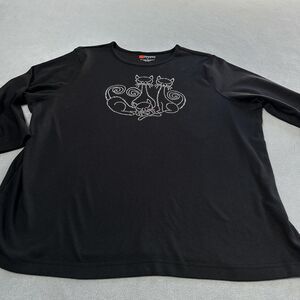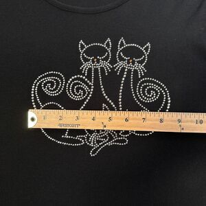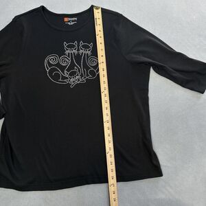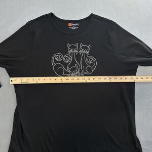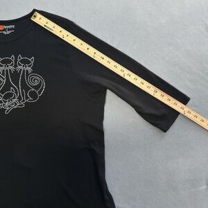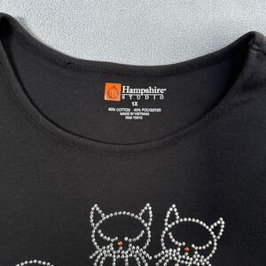 Hampshire Studio Shirt Womens 1X Black Rhinestone Cat Graphic 3/4 Sleeve Top Plus
