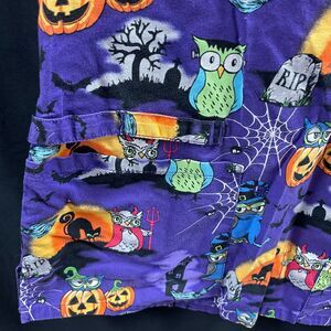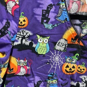 Halloween Scrub Top Pumpkins Owl Scary Purple Small Nurse Hospital