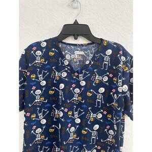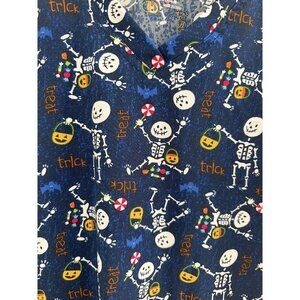 Halloween Scrub Top Scrubaid Women’s‎ M (10-12) Trick Or Treat Skeletons Blue