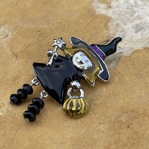 This brooch is perfect for those who love Halloween, trick or treating, witch themes, or fashion and costumes. The brooch is in excellent gently used condition and is ready to wear. Measuring approximately 2.5 inches in length, this brooch is a must-have for any Halloween enthusiast.