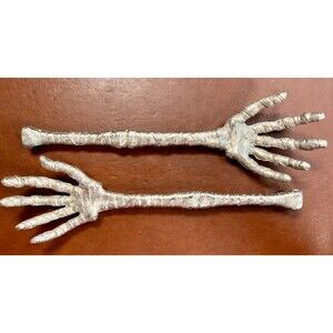 Halloween Skeleton Bone Metal Hands Salad Tongs Forks Server Set 12"