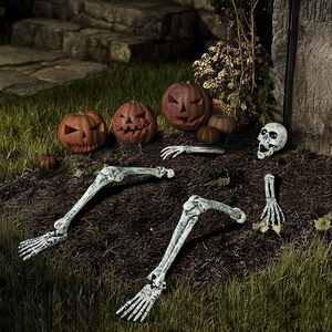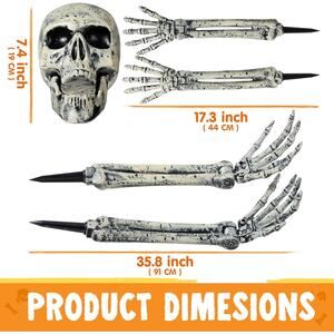 Crafted with spine-tingling detail, total 5 pcs, the set features a plastic skeleton head, a pair of skeletal arms and legs, perfect for simulating a buried groundbreaker skeleton clawing its way to the surface, helping you create a perfect Halloween ghost theme.