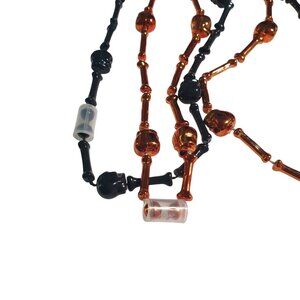Halloween Skull Bones Necklaces Orange Black Plastic Beads Costume Party Decor