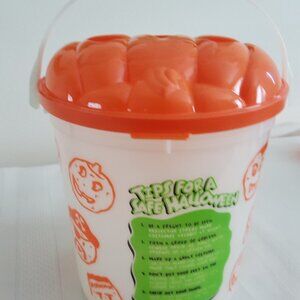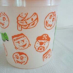 1 Small Dunkin' Donuts Trick or Treat (Glows in dark for a short time after held to bright light) Candy pail with lid and handle- measures approximately 7"H x 6.5"W.,