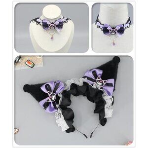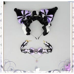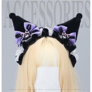 Halloween Soft Faux Fur Plush Fox Ears & Ribbon Bows Headband for Cartoon Kuromi