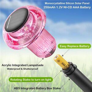 【Product Size】There are 24 solar lights in a box, one 1.2V 250mAh 3A Ni-Cd rechargeable battery (included) and each light is 9.3 inches in height, and the diameter of the top of the light is 2.5 inches.