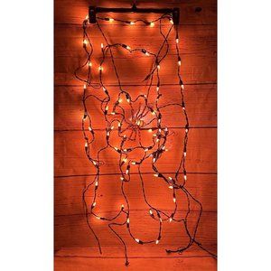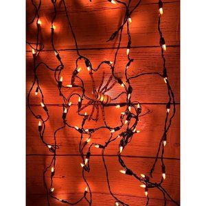 Halloween Spider Web Lights 70 Lights 5 ft Black Wire Orange Bulbs Tested Spooky Holiday