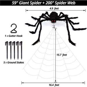 Giant and Value Pack: This set includes a 200" triangular giant spider web and a 59" black furry spider with red eyes, creating a realistic spooky vibe from a distance. Perfect for adding a dramatic effect to your yard or home. This affordable and time-saving pack is a must-have for Halloween!