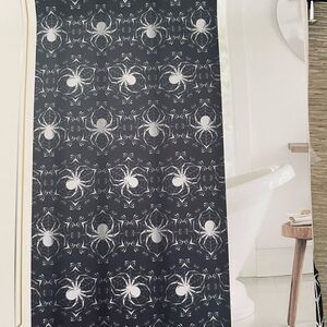 NWT Halloween black and silver metallic spider and spiderweb print fabric shower curtain.