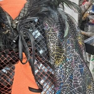 Halloween Spiderweb Cape Feather Collar Costume Party Cosplay Rave Gothic