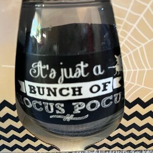 Halloween Fun Party Glasses. New in Original Box. Four Stemless Glasses. Each glass 16oz. Each with their Own Cute Halloween Sayings. Clear with Black and White Decals. Hand Wash Only. Small Amount of damage on the top of the box. A Must have for your Halloween Party! Same Day Shipping M-F. Smoke Free Home. 10/11