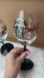 Halloween Sugar Skull Day of the Dead Black Stem Wine Glasses Set of 2 NEW