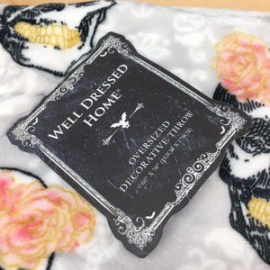 Halloween Sugar Skull Pink Floral Throw Blanket MicroFleece Gray Day Dead 60x70