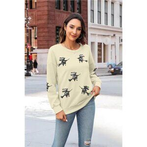 Halloween Sweatshirt – Ghost & Sequin Witch Graphic Crewneck Pullover