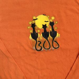 Halloween T-Shirt 2X Orange and Black Cats Moon Vintage Long Sleeve Spooky