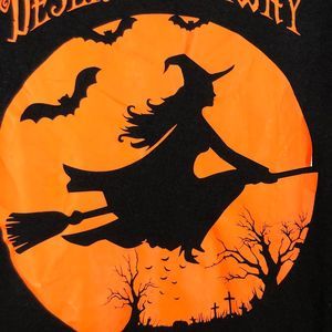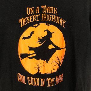 Halloween T-Shirt w/Witch Flying on Her Broom On a Dark Desert Hwy…SZ M