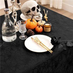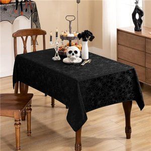 Halloween Tablecloth Black Spider Web Table Cloth Spillproof Fabric Table