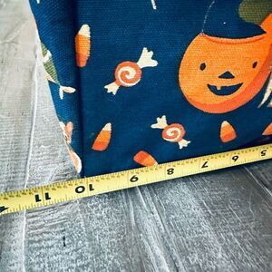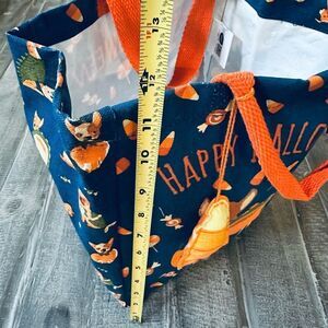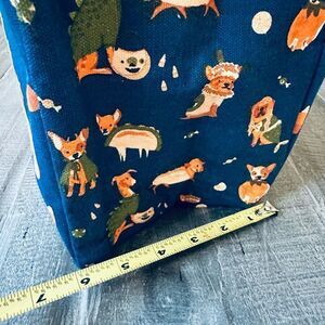 NWT sturdy canvas reusable tote bag for shopping or trick or treating. Cute dogs in costumes, orange on navy blue background.