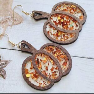 Halloween Thanksgiving Pumpkin Wood Texture Acrylic Glitter Hollow Earrings