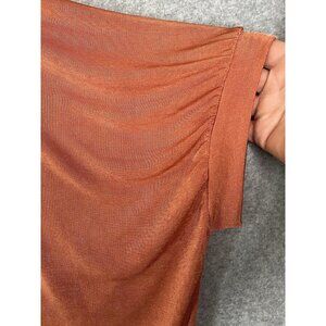 Celebrate the season in style with this women’s oversized tunic top in a warm burnt orange shade – perfect for Halloween gatherings, Thanksgiving dinners, and fall outfits. Crafted in the USA with a soft polyester-rayon blend, this tunic drapes beautifully with its relaxed dolman sleeves and flattering hi-low hemline.