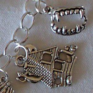 Halloween Theme 13 Charm Bracelet SP New Handcrafted + Organza Roses Gift Bag