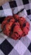Orange pumpkin decor with Halloween prints. Features bats and pumpkins. Handmade and hand stitched by me, Greta for Halloween decor, new material used
