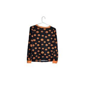 Halloween Themed Pumpkin Print Long Sleeve Pajama Top Medium