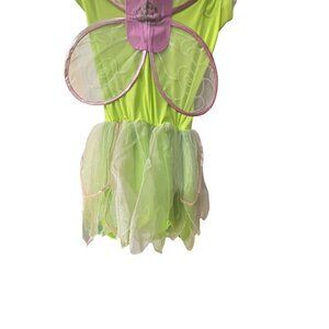 This Tinkerbell Fairy Costume Set features a vibrant green dress with delicate details, matching shoes, and a comfortable undergarment. Made with care for a charming fairy look, it combines style and comfort, suitable for dress-up events or themed parties. A complete ensemble for a magical transformation.