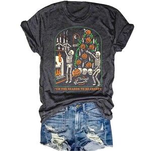 Halloween ‘Tis The Season To Be Creepy’ Tee Shirt. Dark gray.