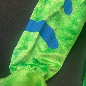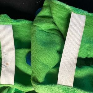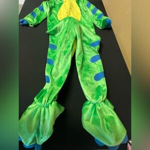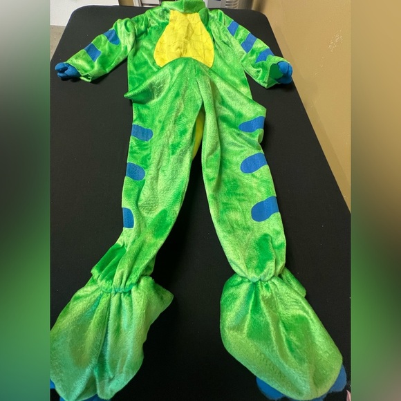 Plush Egg not Included. This costume worn once. Like new. There are two white straps, one on each foot that straps around shoes. They have little dirt on them, I scrubbed off best as possible, but it will be the straps that are on bottom of child’s shoes. Great tail on costume.