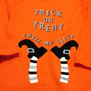 just for you made by Carter's shirt, kids size 3T. Says Trick or Treat, Smell my Feet. Funny shirt for the holidays. New without tags. Unisex but since there isn't a category for that, listing one under boys and one under girls.