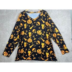 Halloween Tunic Top 3XL Plus Size Pumpkins Cats Skulls Long Sleeve