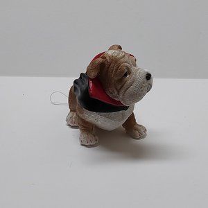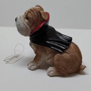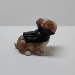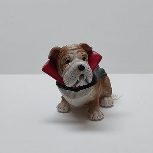 It's Trick or Treat and this dog wants in on the fun! Look at how adorable he is, all dressed up for Halloween in a vampire costume complete with horns on top of his head..