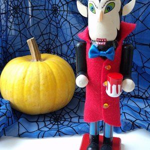 Fancy a cup of blood? This is a vampire/nosferatu nutcracker doll. He is charming and mysterious! A perfect gift and decoration piece.