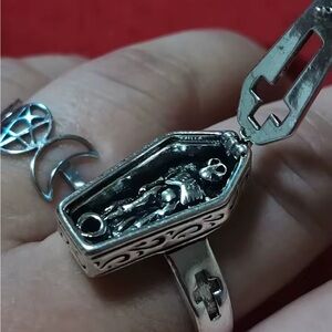 Halloween Vintage Silver Gothic Coffin Ring vampire skull