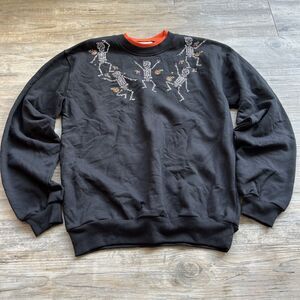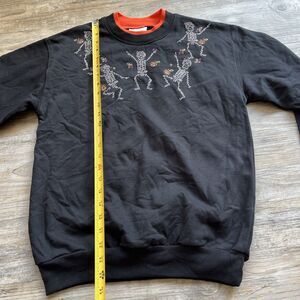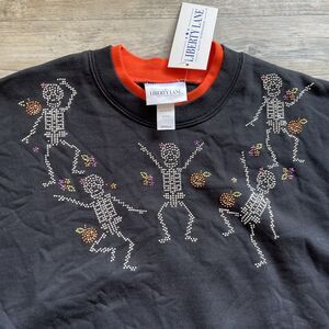 Halloween Vintage Sweatshirt Small Black Orange Skeletons Liberty Lane Spooky
