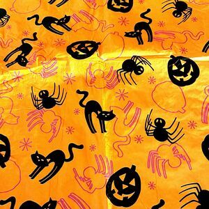 This Vintage Halloween Vinyl Tablecloth features a festive pattern of Jack OLanterns and a Black Cat, perfect for the Halloween occasion. The rectangular shape and size of 50x66 make it suitable for standard dining tables. Made from vinyl, cloth, plastic, and fleece, this original 1990 style tablecloth is machine washable for easy care. The orange color and Halloween theme add a whimsical touch to your kitchen decor, making it a charming addition to any home.